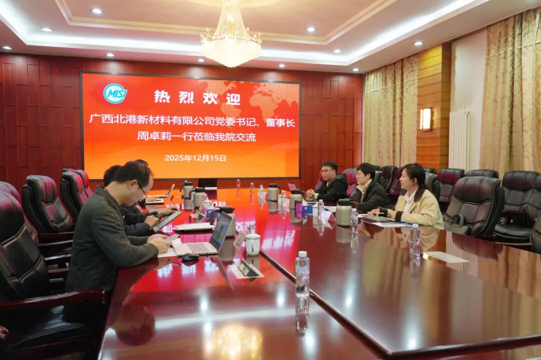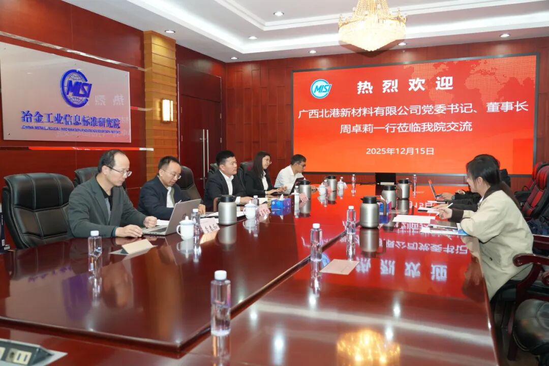 12月15日,广西北港新材料有限公司(以下简称:北港新材料)党委书记、董事长周卓莉,副总经理张娅琳,企业管理部部长葛灿博一行来访冶金工业信息标准研究院(以下简称:信息标准院),与信息标准院党委书记、院长张龙强和相关部门负责人及专业人员,就深化战略合作、“十五五”转型升级等议题进行座谈交流并打卡。
