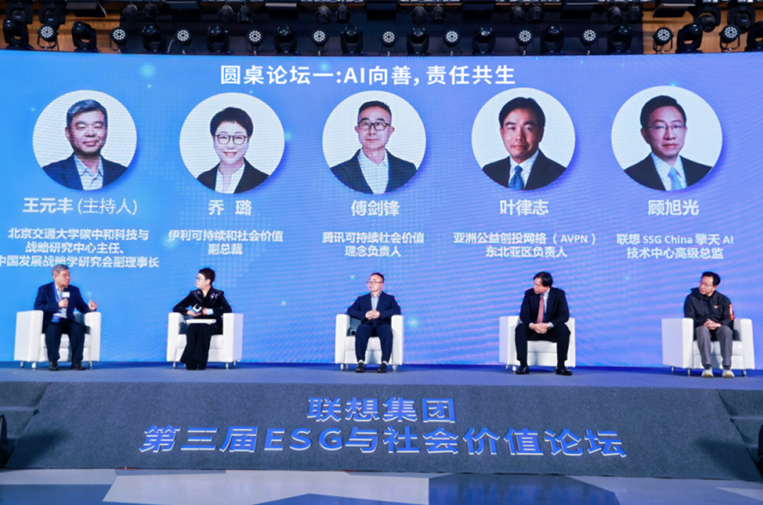圆桌论坛环节,围绕“AI向善,责任共生”“ESG驱动商业模式创新”两大主题,论坛邀请跨领域代表开展圆桌对话,共同探寻可持续发展的创新实践方向与落地路径。