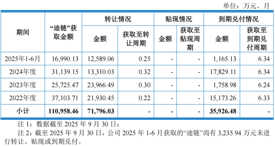 报告期内,发行人收到“迪链”的期后处置情况如下: