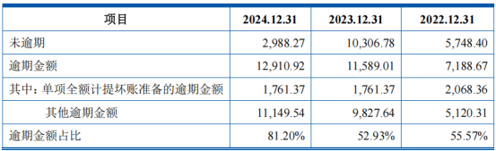 报告期内,公司应收账款逾期占应收账款余额比例分别为55.57%、52.93%和81.20%,逾期应收账款形成的主要原因系:A.部分客户内部付款审批流程较长,实际结算周期相较合同结算周期有所延迟,导致款项暂时性逾期,此类逾期款项对应的客户主要为锂电制造行业大型企业且多为上市公司,经营业绩稳健、资金实力雄厚,期后无法收回的可能性较低;B.小部分客户因经营不善出现财务困难,无力支付货款,该类客户应收账款逾期时间通常超过一年,对于该部分逾期应收账款,公司已考虑其未来现金流量及可回收性,对发生明显信用风险的款项单项计提坏账准备。