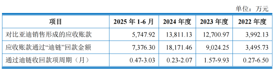 发行人主要通过“迪链”完成对 比亚迪 的收款,报告期内不存在“迪链”转换为应收账款的情形。