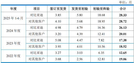 报告期内,发行人对 比亚迪 及其他客户销售合同平均执行周期情况如下: