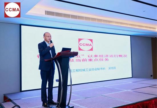 吴培国作《工程机械行业“十四五”发展概况及当前重点任务》报告,他简要回顾了行业“十四五”至今取得的成绩,分析了行业面临的机遇与挑战,就未来发展趋势进行了展望,并提出了当前行业的七项重点任务。