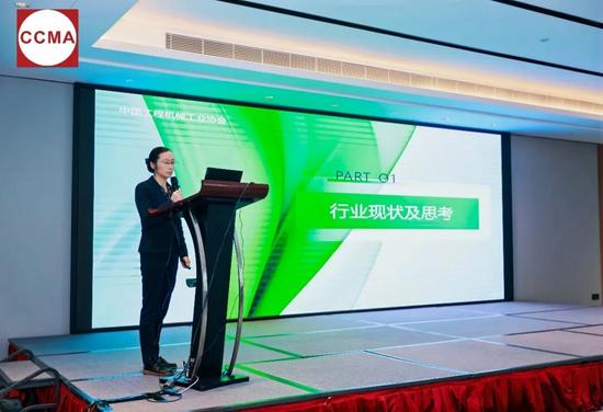 中联重科混凝土机械公司总经理助理、协会专家委员会(混凝土机械分会)委员王佳茜作《从智能化角度谈企业创新,走向国际化的思考》主题报告