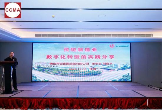 佛山市云雀振动器有限公司董事长、协会专家委员会(混凝土机械分会)委员刘袁平作《传统制造业数字化转型的实践分享》主题报告