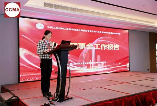 混凝土机械分会新任秘书长黄佳受托代表第九届理事会作工作总结报告