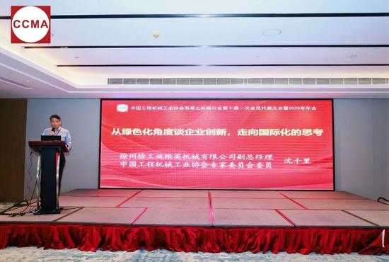 徐州徐工施维英机械有限公司副总经理、协会专家委员会委员沈千里作《从绿色化角度谈企业创新,走向国际化的思考》主题报告