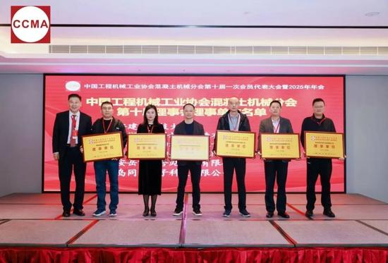 经过大会无记名投票选举,上海伦联机电设备有限公司等30家企业当选混凝土机械分会第十届理事会理事单位;珠海仕高玛机械设备有限公司等5家企业当选混凝土机械分会第十届理事会副会长单位;三一集团泵路事业部袁跃等5位企业负责人当选混凝土机械分会第十届理事会轮值副会长,中联重科股份有限公司符忠轩当选协会混凝土机械分会第十届理事会会长;中联重科混凝土机械公司黄佳当选协会混凝土机械分会第十届理事会秘书长。