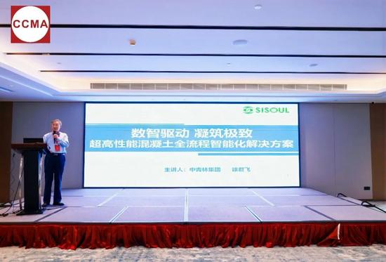 青岛新型建设机械有限公司副董事长、协会专家委员会(混凝土机械分会)委员徐君飞作《数智驱动凝筑极致——超高性能混凝土全流程智能化解决方案》主题报告