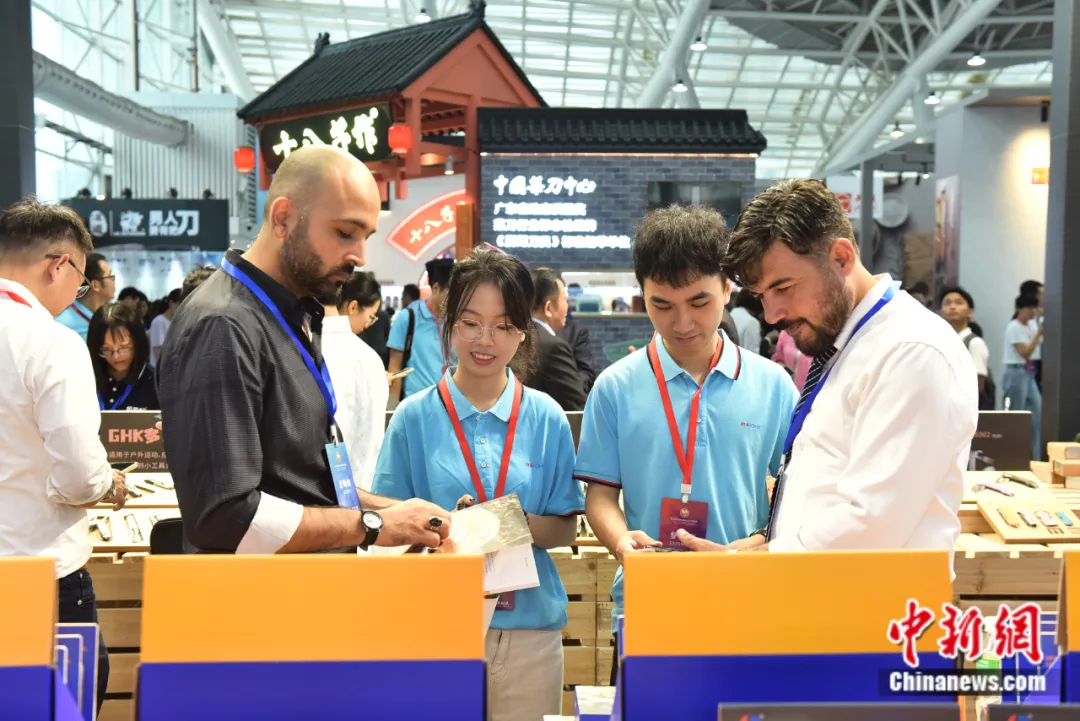 图为阳江刀博会吸引采购商洽谈咨询。阳江市商务局供图