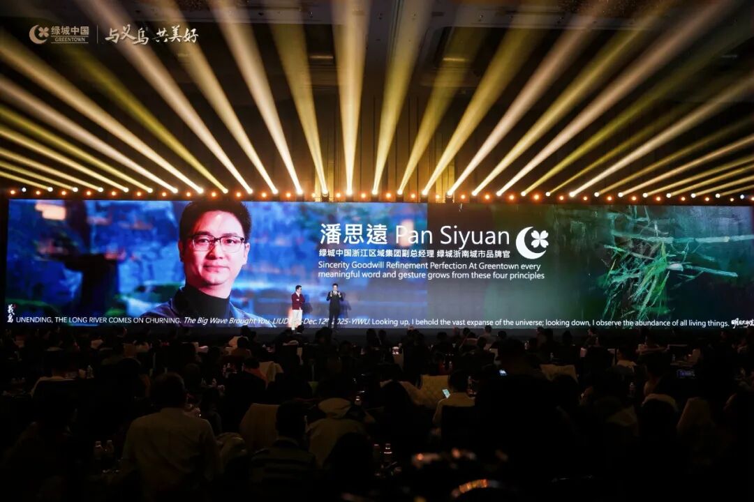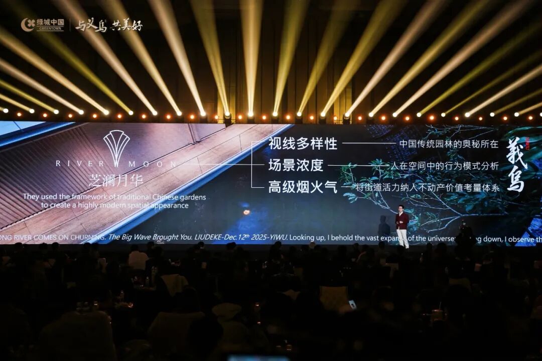 感谢潘思远先生的分享。我是刘德科,刚才我们讲的是「中国有义乌」,接下来我们讲「 绿城 有月华」。在 绿城 的高端产品系中,「月华系」是最年轻的产品系,它的灵动感与奢华感跟过往的表达都不太一样。