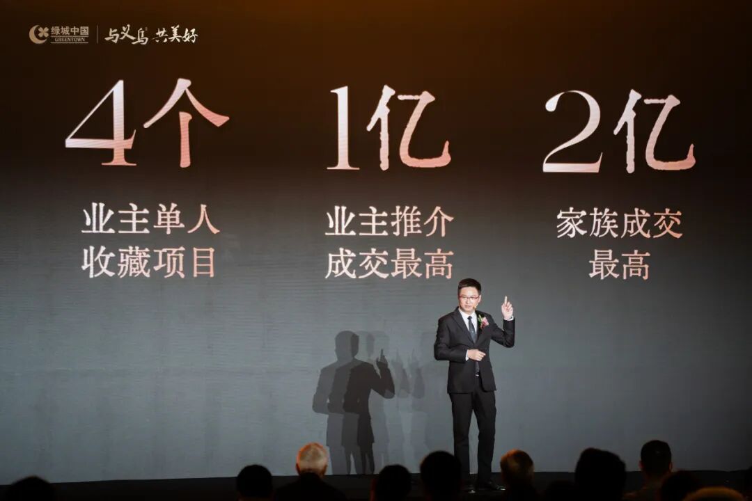 在我们的业主中,有个人成交最高1亿的,也有通过老业主推荐成交1亿元的,有个人收藏4个 绿城 项目,有家族累计成交2亿元。今年, 绿城 在金华地区的总体满意度和忠诚度都位列第一。自凤起潮鸣开始,我们在义乌的每一个示范区,都成为行业标杆,累计接待参观团队超3350组,参观人次突破23000人。在义乌的千万级豪宅市场,1200万以上成交 绿城 占据47.3%。