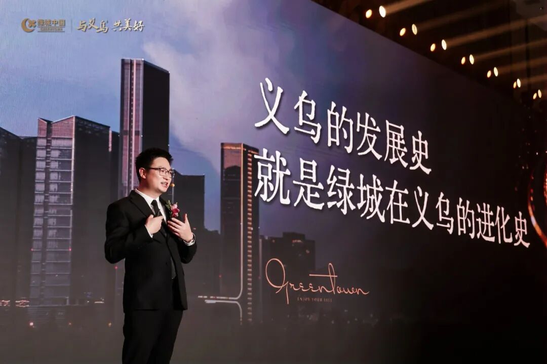 大家晚上好,我是潘思远。 绿城 在义乌已经走过了12个年头,面对这样一座创造奇迹的城市,我们知道只有引领性的产品,才能匹配它的步伐。在义乌的12年, 绿城 献上了9部作品:以经典立序,我们有法式优雅的玫瑰园、中式意境的桃花源;我们带来了蘭园、晓风印月、桂语兰庭,带来了作为城市封面的凤起潮鸣、隐逸山水的凤栖逸庐,还有即将面市的芝澜月华生息社区,以及全新的朝阳门地块,可以说,除了杭州,义乌是拥有 绿城 高端产品系最全的城市。