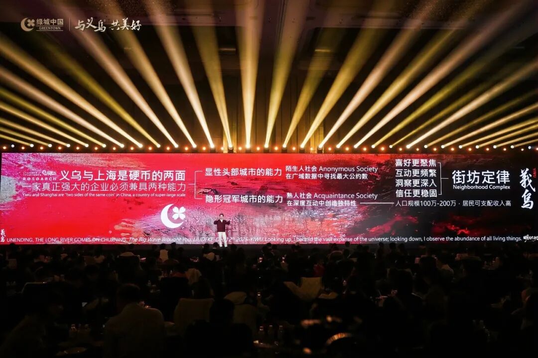 我今天的演讲,可以总结为三句话——「中国义乌」「 绿城 有月华」「资产有前景」。把这三句话放在今天的义乌,你甚至能够感受到如今中国经济的态势、韧性与活力。
