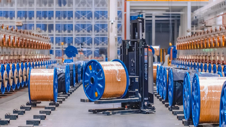 中天钢铁生产车间,AGV智能无人小车正在运输钢帘线盘条。受访者供图
