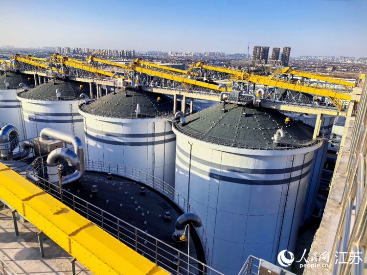 俯瞰淮安苏北储备粮有限公司的浅圆筒仓。人民网崔小倩摄