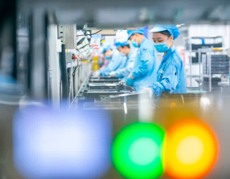 华工科技光电子信息产业研创园洁净厂房,正在生产高速光模块。(魏铼|摄)
