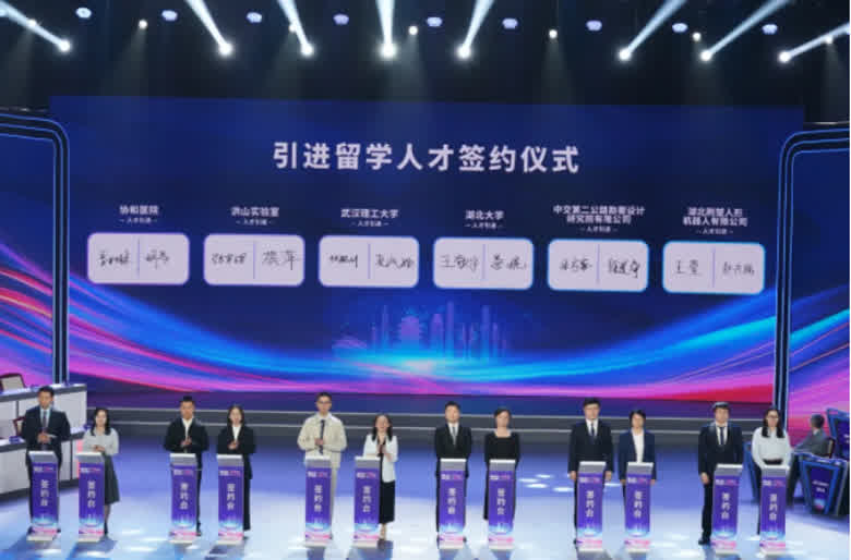2025年湖北省留学人员创新创业大赛总决赛,引进留学人才签约仪式。(魏铼|摄)
