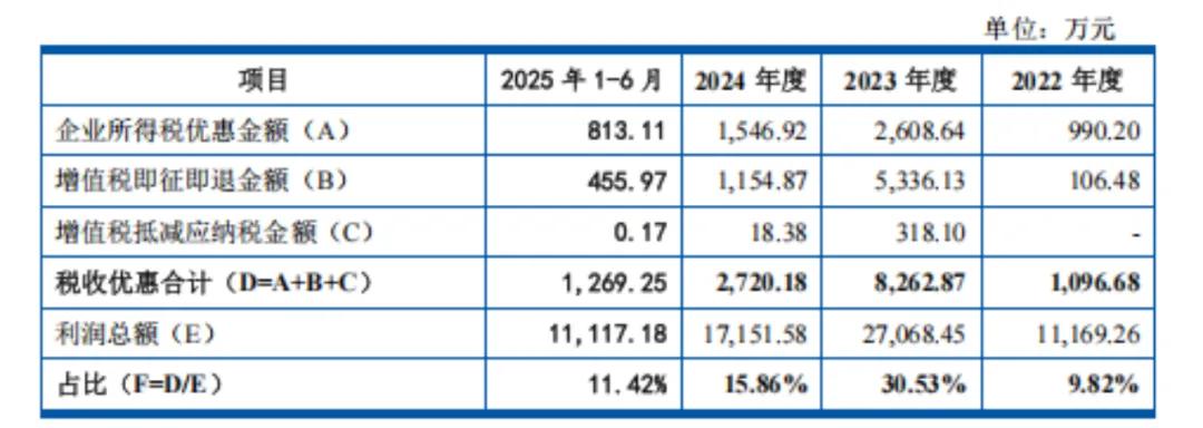 其中,2024年净利润较2023年下滑34.9%,主要是软件企业增值税即征即退、产品毛利额变动等因素影响。报告期内,尚水智能享受的税收优惠总额分别为1096.68万元、8262.87万元、 2720.18万元和1269.25 万元,占当期利润总额的比例分别为9.82%、30.53%、15.86%和11.42%。