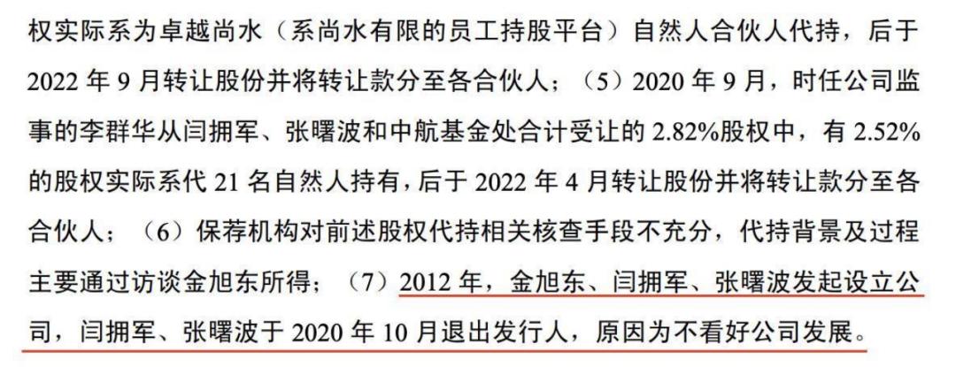 并且闫拥军退出的十分彻底,尚水智能前股东、监事谢平波与闫拥军相熟,因IPO相关事宜,谢平波向闫拥军转达保荐机构的采访邀请,但闫拥军表示其已完全退出尚水智能,不愿意再介入发行人的任何事项之中,因此不愿意接受中介机构对其的访谈。