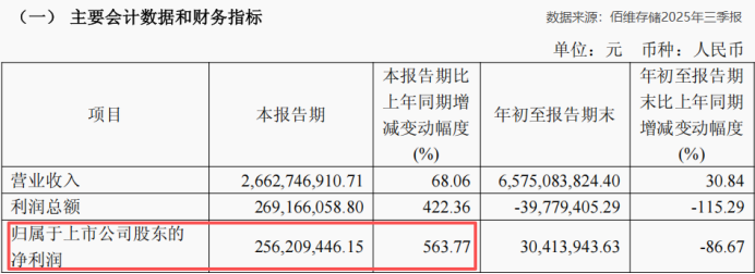 而在这股复苏浪潮中,一家中国公司的业绩反转,堪称戏剧性。佰维存储,2025年上半年还亏损2.26亿元,到了第三季度,却单季净赚2.56亿元,净利润同比狂飙近564%!
