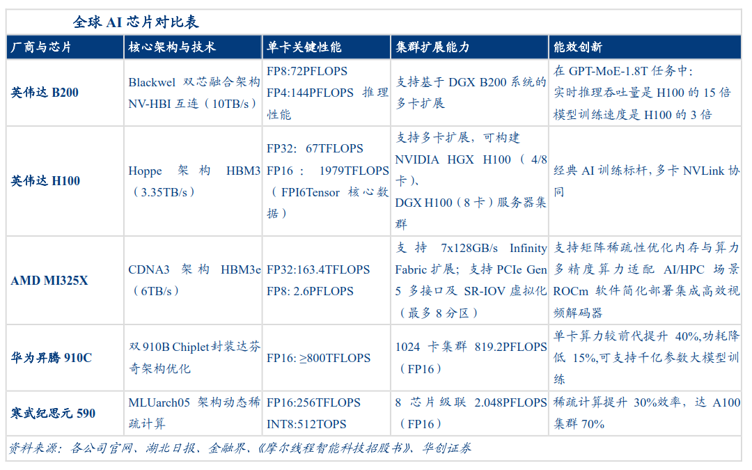 尽管上述产品与英伟达高端产品仍存在差距,但国内GPU单卡性能提升路径清晰,正通过架构创新(如昇腾达芬奇架构、寒武纪MLUarch03架构)与技术整合(先进Chiplet、MLU-Link多芯互联等)逐步缩小代差。