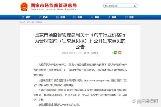 针对汽车价格乱象,规范汽车行业价格行为,从生产和销售环节,国家市场监管总局最新发布《汽车行业价格行为合规指南(征求意见稿)》下文称“《指南》”,向全社会公开征求意见。