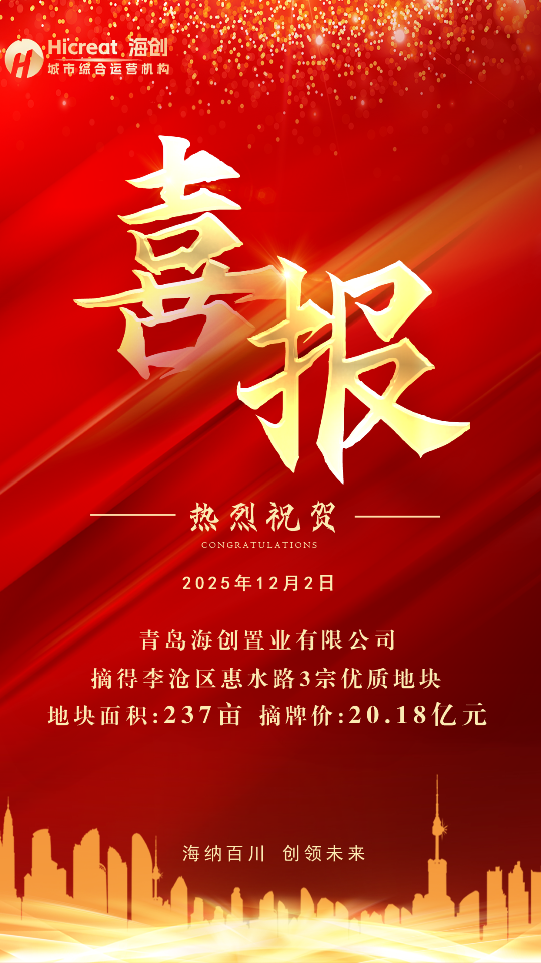 在拿地后,海创还发布了喜报,和大家分享了自己的喜悦心情。