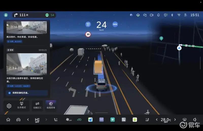 此外,CP Master系统的“防御性驾驶”功能是基于VLA大模型的空间语义理解能力,CP Master系统可以推理未来数秒可能发生的风险。例如遇到路口被施工围挡封闭,或途经路边的临停大车,车辆会依据周围环境先行降速,判断安全无虞后才会通过,将安全从“被动响应”前移至“主动避险”,防患于未然。