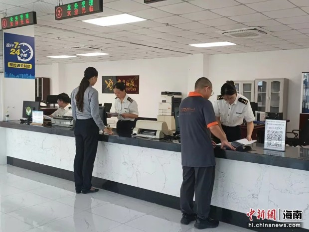 在海口海关所属三亚机场海关业务受理大厅,企业办理货物通关业务。张月和摄