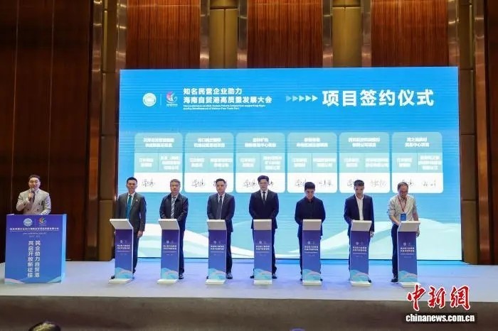 11月27日,知名民营企业助力海南自贸港高质量发展大会重点项目集中签约活动在海口举行,现场集中签约26个项目,涵盖旅游业、现代服务业、热带特色高效农业、高新技术产业等领域。中新社记者骆云飞摄
