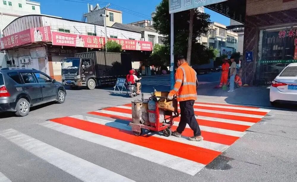 铺设562平方米醒目的红白斑马线、新增371米防护护栏、安装标准的联网红绿灯和四套监控设备、用鲜亮的红色涂料涂刷货车转弯盲区……