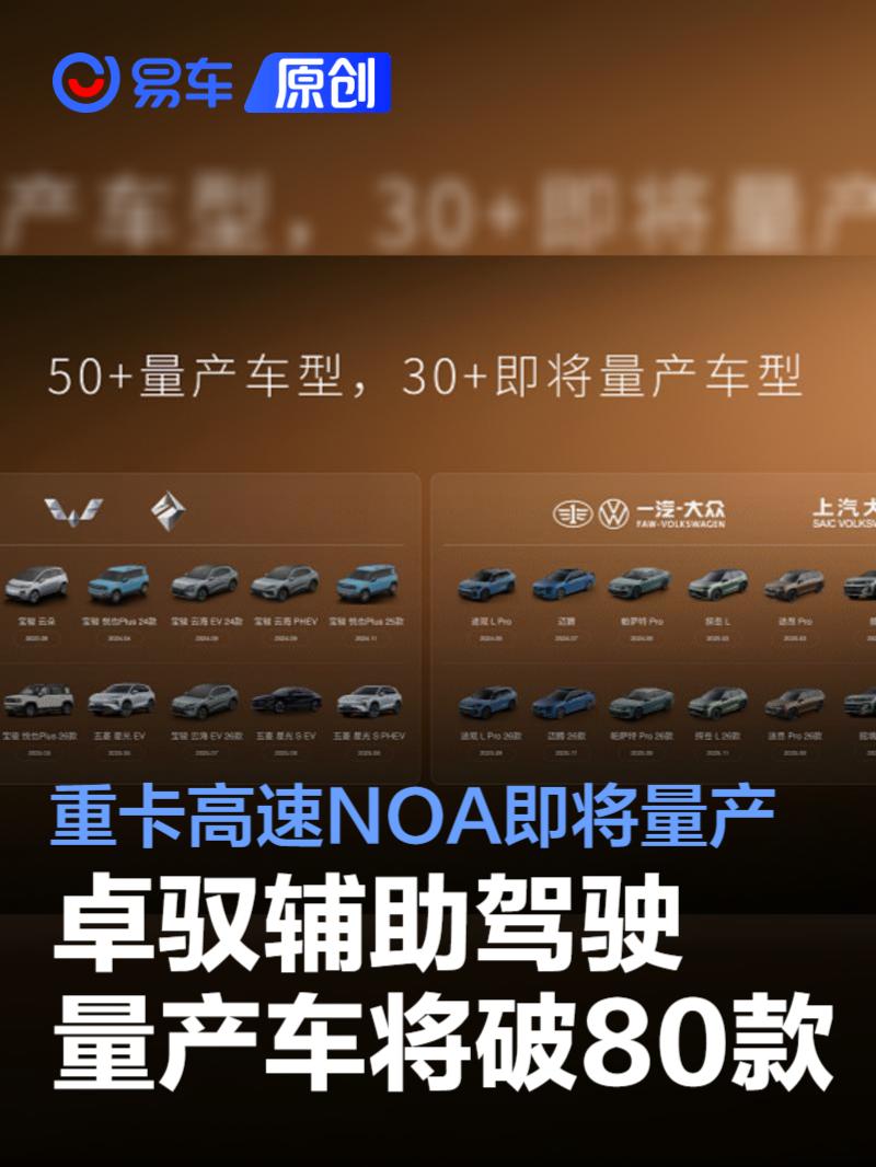 卓驭辅助驾驶量产车将破80款 重卡高速NOA 2026年上半年量产