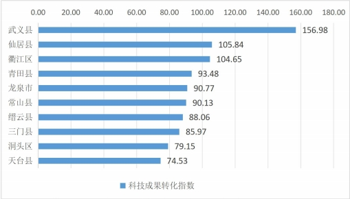 22 县科技成果转化指数排名前十位县(市、区)