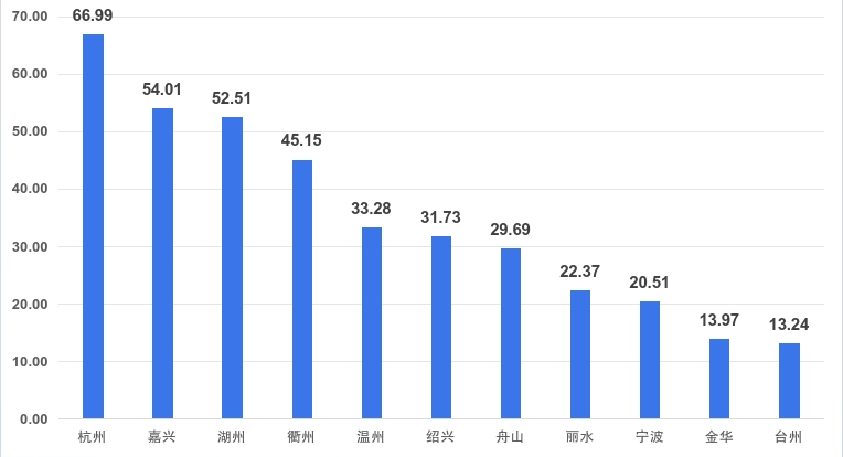数据显示,“X项”有效发挥了激励引导作用。全省11个设区市均因改革举措获得正向赋分,总指数普遍提升。其中,杭州市以66.99分位居首位,在概念验证中心布局、技术市场活跃度、赋权改革覆盖及技术经理人储备等方面全面领先;嘉兴市以54.01分位列第二,高级技术经理人数量全省最多,科技金融支撑有力;湖州市和衢州市分别以52.51分和45.15分实现排名进位,排在全省第五位和第九位——湖州全域推进“先用后转”成果池建设,衢州成功建成2个国家级中试平台,以重点突破带动体系效能整体跃升。