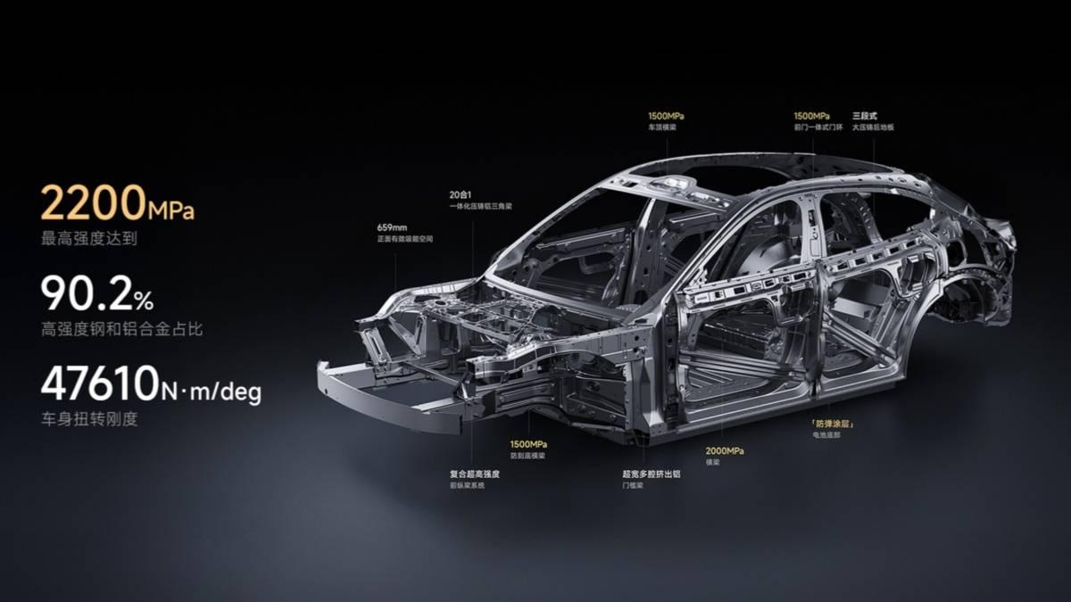 ▲小米 YU7 的车身结构