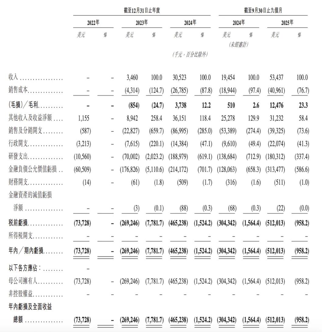 MiniMax“高速增长、持续亏损”的发展模式,已成为不争的事实。招股书显示,2023年到2025年第三季度,亏损分别为2.69亿美元、4.65亿美元与5.12亿美元。