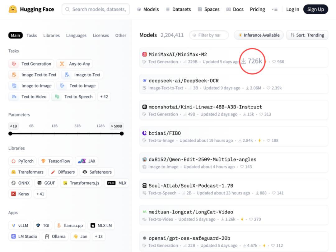 M2在HuggingFaceTrending榜单中位列全球第一,图/MiniMax官网