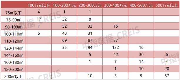 2025年12月,从面积段和价格段来看,120-144㎡面积段、300-400万元价格段销售最为热门,成交132套,占比14.07%。
