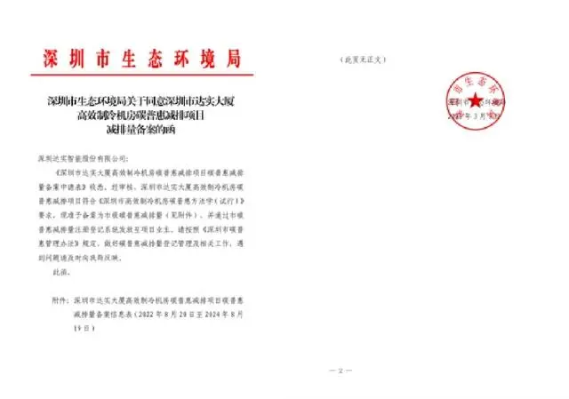 其中,达实智能主导编制了《深圳市高效制冷机房碳普惠方法学(试行)》。2025年3月,深圳市首笔高效制冷机房碳普惠减排量由深圳市生态环境局签发,本次签发的减排量来自达实大厦高效制冷机房碳普惠减排项目,这也标志着深圳在建筑节能降碳领域迈出实质性一步。