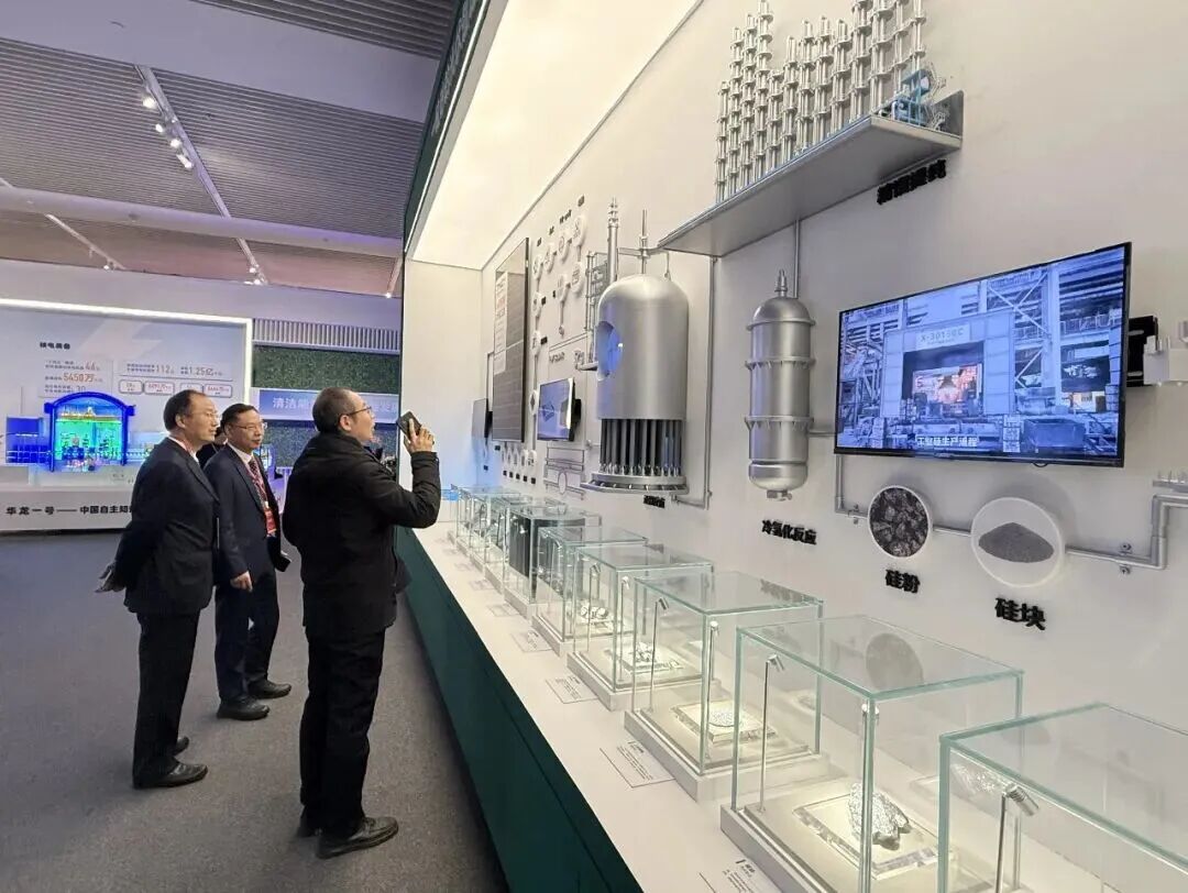 观展观众了解“一粒砂的光伏智造之旅”。图源通威集团