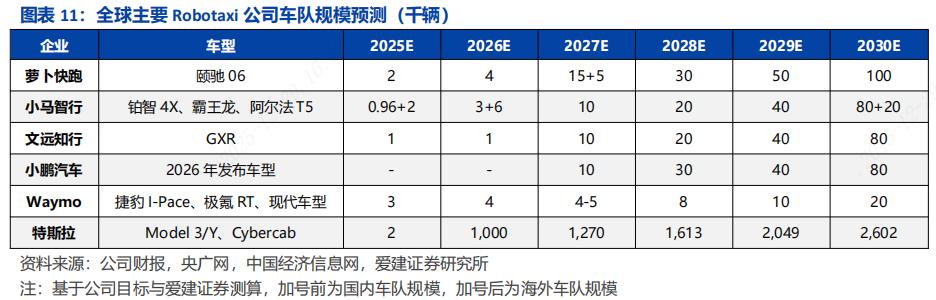 ■格局:中美双极清晰,中东或率先放量。全球Robotaxi商业化路径呈现“区域试点—规模扩张—模式复制”演进。美国由特斯拉与Waymo为主导,技术及商业化进程暂时领先。中国形成以萝卜快跑、小马智行、文远知行为代表的多元竞争格局,跨平台协作为放量主线。国内公司依托复杂路况训练与政策试点积累经验,加速向中东、东南亚及欧美输出技术和车队。其中,中东因高客单价、监管开放度与高人力成本替代需求,成为国内企业短期盈利与全球复制的优选市场。