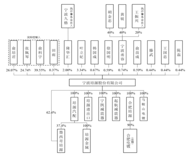 招股书显示,培源股份的控股股东、实际控制人为俞培君、张佩琴、俞科宇、田雨,合计控制公司90.73%的股份。目前,俞培君担任公司董事长、总经理职务,俞科宇任公司董事。