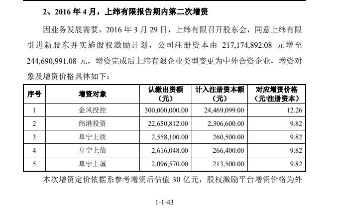 金风投控2016年曾以增资价格12.26元入股上纬新材,投后估值 30 亿元。而2026年1月5日,后者股价上涨至127元,市值业已超过530亿元。