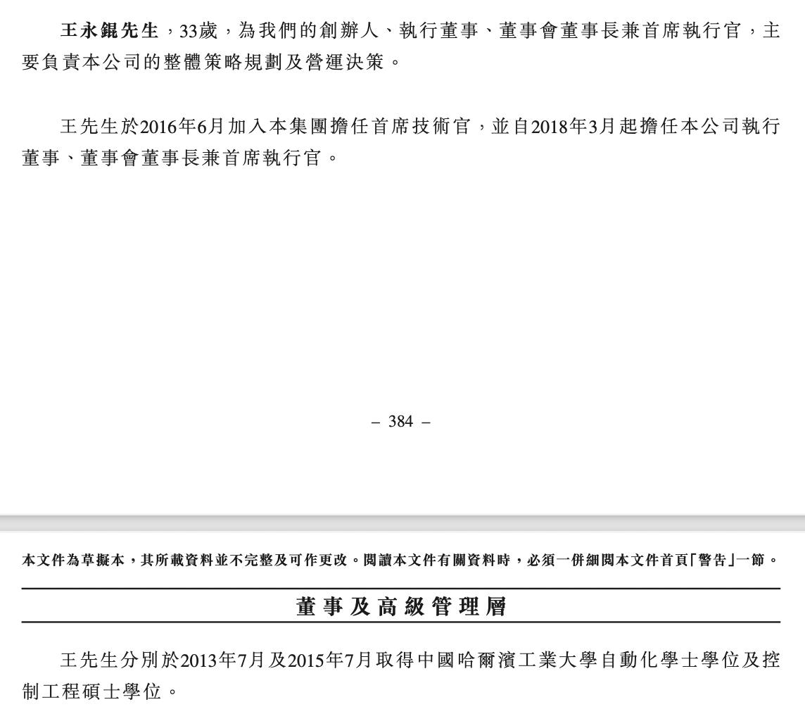 资料显示,王永锟,33岁,为公司创办人、执行董事、董事会董事长兼首席执行官,主要负责公司的整体策略规划及营运决策。