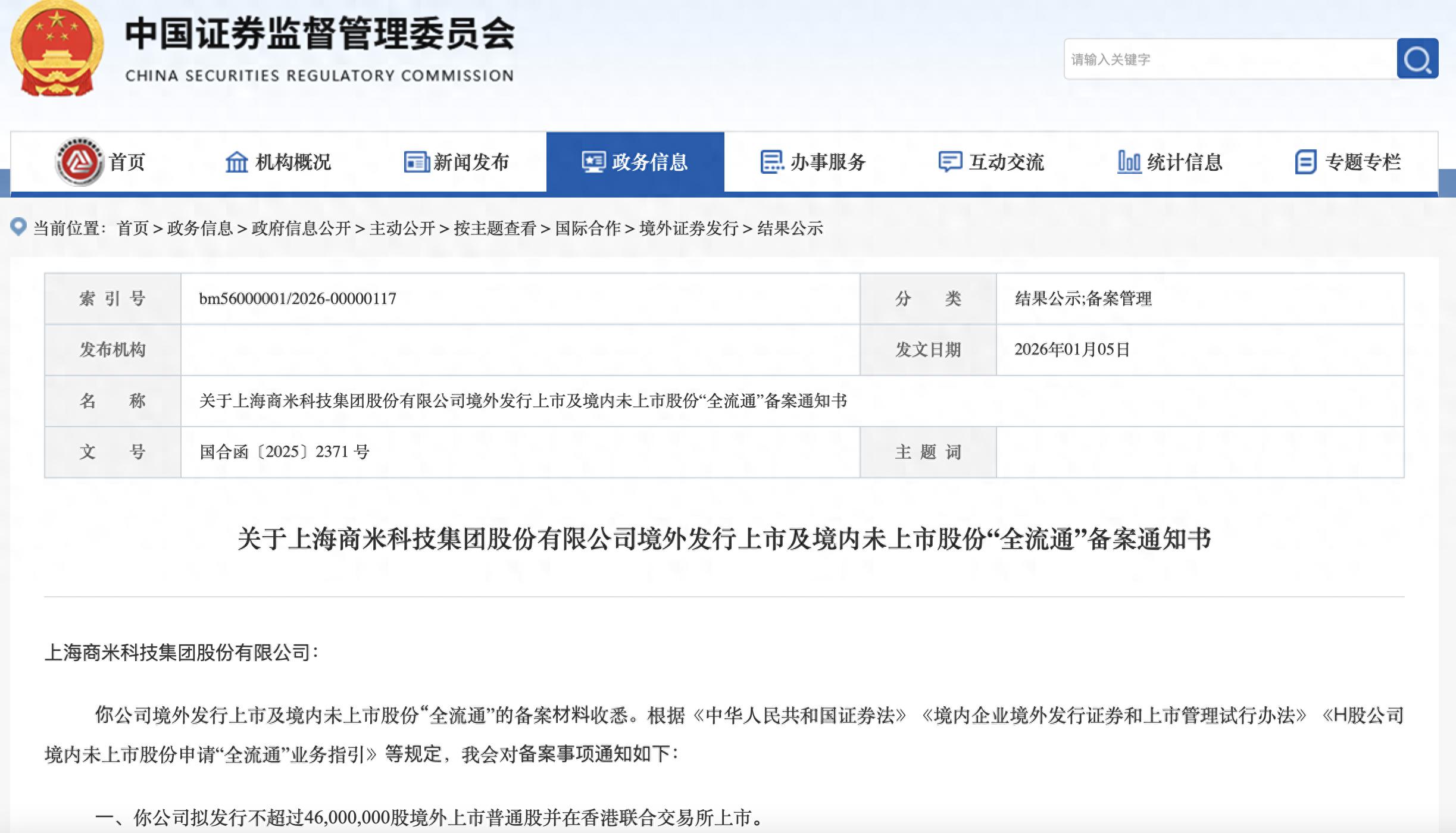 瑞财经吴文婷 1月5日,上海商米科技集团股份有限公司(以下简称“商米科技”)赴港IPO获中国证监会备案,公司拟发行不超过46,000,000股境外上市普通股并在香港联合交易所上市。