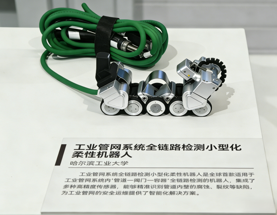 近日,由中国国家博物馆、工业和信息化部新闻宣传中心共同举办的“筑基强国路——中国制造‘十四五’成就展”在中国国家博物馆开幕。哈尔滨工业大学威海校区研制的“工业管网系统全链路检测小型化柔性机器人”项目入选展览。