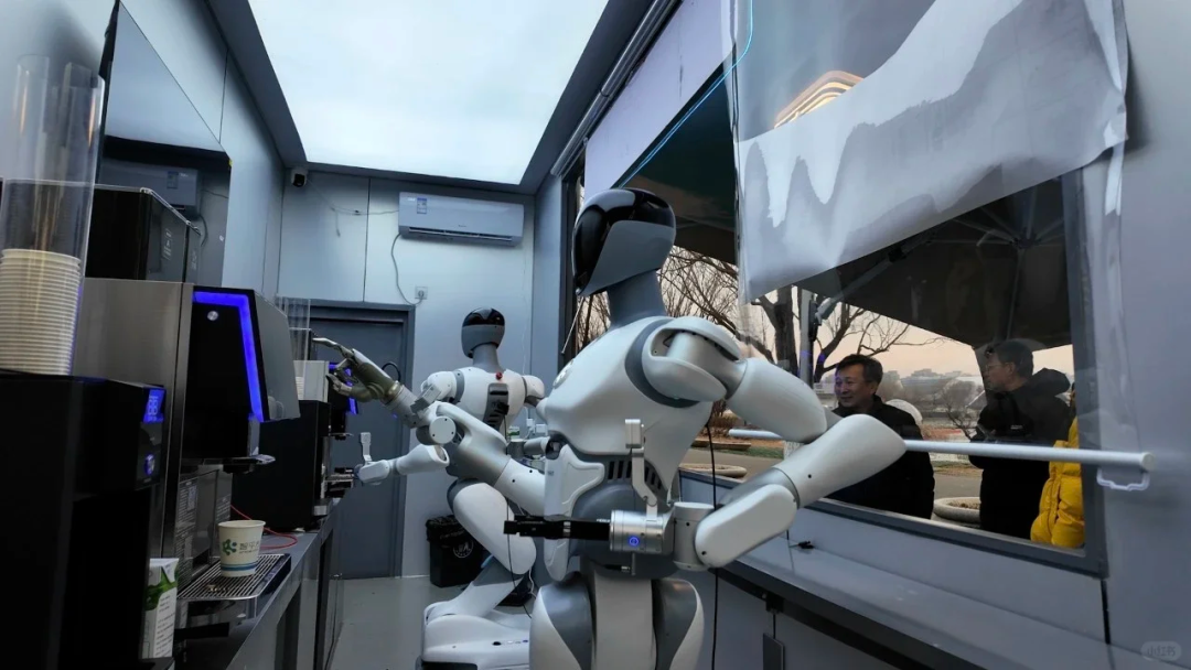 亦或者,具身智能在购物中心高频出镜。众擎机器人零售旗舰店在深圳深业上城开业,以“硅基生命的未来空间站”为设计核心,打造出沉浸式机器人主题消费空间。门店有多位“赛博导购”提供服务,不仅能协助购物、表演才艺,还可陪伴互动、帮忙吹头发。“智魔方”等具身智能服务空间在2025年底进驻核心商圈,其搭载的机器人能独立完成咖啡制作、零售导购等复杂任务,并实现人机协同。