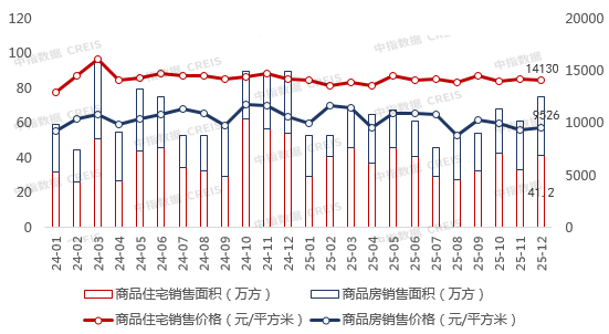 从销售价格来看,12月各业态占比波动不大,商品房成交均价小幅上涨至9526元/㎡。成交住宅项目价格整体保持平稳,12月成交均价为14130元/㎡。