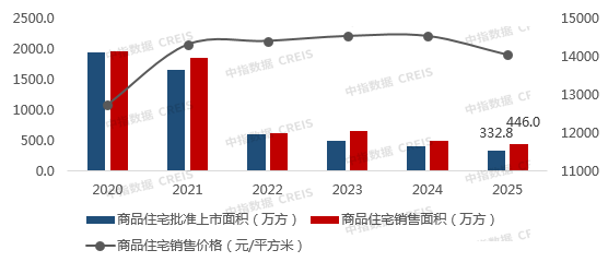 2025年重庆房地产市场以需定供,市场持续去化,商品房供应面积为612.3万㎡,成交面积为724.3万㎡;商品住宅供应面积为332.8万㎡,成交面积为446.0万㎡。